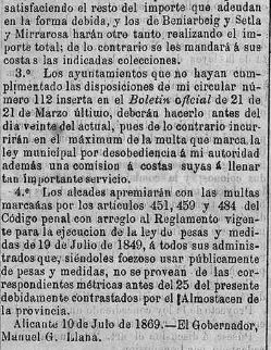 86- 1869 Juliol. Pesos i mesures. Avisos als Ajuntaments