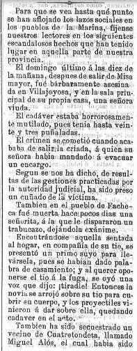 Les notícies de crims i segrestos inundaven les pàgines dels diaris. En la Villa Joiosa, Fageca o a Quatretondeta els fets luctuosos se succeïen sense control aparent de l’autoritat i amb peculiaritats bastant originals (llegir les atrocitats en l’article, per fer-se una idea lo bèsties que eren).