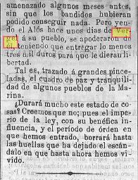 El periodista es refereix a la República presidencialista del General Serrano, acabada d’iniciar, com “el període d’ordre en què hem entrat” i a la Primera República” com “l’escàndol en què fins ara hem viscut “.
