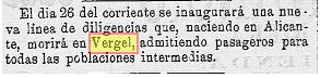 El dia 26 d’abril de 1886 es va inaugurar a Alacant el primer servei de transport de diligències entre la capital provincial i El Verger, admetent passatgers en totes les ciutats intermèdies.