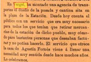 I seguint la recent febre dels serveis de diligències, al Verger, Agustín Fornés, amo de la “posada i cantina” situada en la Plaça de l’Estació, muntava la seua pròpia Agència de Transport.