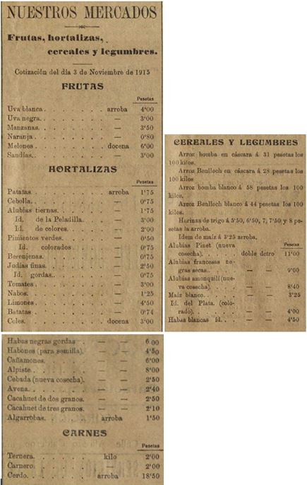 No obstant això, a Dénia hi havia molt pocs magatzems treballant i els articles de primera necessitat continuaven pels núvols. La premsa proposava a l’Ajuntament no celebrar la fira eixe any perquè “amb l’escassetat de diners i lo caríssima que està la vida, els pocs cèntims que queden acabarien d’anar-se de les nostres butxaques en els barracons, bunyols, torrons, cinemes… el que ens arrossegaria a un hivern de fam i misèria”. Amb el jornal màxim a 1,50 ptes (el que el tinguera), el preu de la carn de vedella a 2 ptes el Kg. les creïlles a 1,50 l’arrova i les farines entre 5 i 8 ptes l’arrova, la premsa no anava gens descaminada. I el jornal de les dones que aconseguien treball en el camp o en la recol·lecció de la taronja (sic), treballant de sol a sol, “rares vegades superaba una pesseta”.